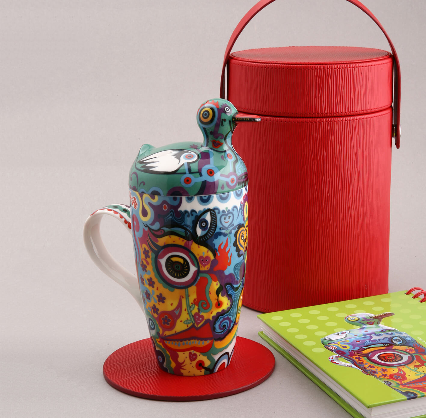 藝術家洪易的五款特色風格「剪紙」、「青花」、「機械」、「彩色」、「客家花布」,搭配藝術品原作雕塑的圖紋元素,呈現在保溫瓶上,同時附上紅玉茶包,結合成送禮自用相宜的禮盒組!希望在實用功能上更增添藝術的氣息,為生活帶來更多驚喜。